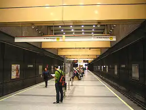 Àngel Guimerà is a metro station of the Metrovalencia network in Valencia, Spain. It is situated on Carrer d'Àngel Guimerà, named after the writer Àngel Guimerà, in the southwestern part of the city centre. The station is an underground structure.