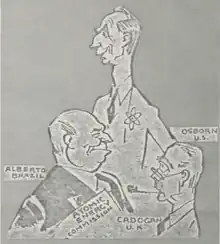 Caricature of Álvaro Alberto, Frederick Osborn and Alexander Cadogan at UNAEC in 1946