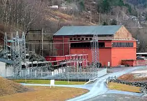 Bjølvo kraftverk, the hydroelectric plant originally built to power industrial production was returned to state ownership by escheat in 1964, and is now owned by Statkraft. The current, modernised plant, Nye Bjølvo, was completed in 2006 and at that time had the highest free-fall pressure shaft of any European hydroelectric plant, at more than 600 m. It has a yearly output of about 390 GWh.[30] The plant exploits the reservoir Bjølsegrøvatnet, which has a regulated surface at 850–879 meters above sea level.[31]