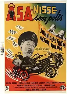 Åsa-Nisse as a Policeman (Swedish: Åsa-Nisse som polis) is a 1960 Swedish comedy film directed by Ragnar Frisk and starring John Elfström, Artur Rolén and Brita Öberg.[1][2] It was shot at the Täby Studios in Stockholm. The film's sets were designed by the art director Nils Nilsson. It was the eleventh film in the long-running Åsa-Nisse series about a raffish character living in rural Småland.
