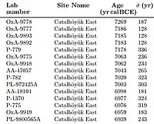 Calibrated Carbon 14 dates for Çatalhöyük, as of 2013.[1]