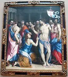 In 1517 Bartolomeo Panciantichi was the first to add a chapel to the church.[2] He commissioned an oil on panel altarpiece of the Assumption of the Virgin Mary for it in 1522 from Andrea del Sarto,[3] but the artist chose a poor piece of wood and the work remained incomplete and never exhibited in Lyon.[2] In 1526 Thomas I de Gadagne donated the cost of another chapel, where he and his wife were later buried.[4] His nephew and heir Thomas II commissioned Francesco Salviati to paint a work for it showing The Incredulity of Saint Thomas.[5] The banker Leonardo Spiza added a mausoleum to the church, as did another Florentine who commissioned Antonio Rossellino to design it.[5] The church was demolished in 1816, though the entrance arch to one of its chapels can still be seen at 8-10 rue de Sully, where it was reused after the church's demolition.[4]