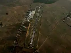 The airport, located 3.5 km (2.2 mi) south southeast of the city,[1] has two runways, the main runway being 01/19. The second runway, 08/26, is a short sand strip that is rarely used.