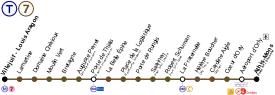Île-de-France tramway Line 7 (usually called simply T7) is part of the modern tram network of the Île-de-France region of France. Line T7 runs between Villejuif – Louis Aragon in Villejuif (where it connects to the Paris Métro) and Porte de l'Essonne in Athis-Mons, south of Paris. It also serves Paris Orly Airport. The line has a length of 11.2 km (7.0 mi) and 18 stations. It opened to the public on 16 November 2013.