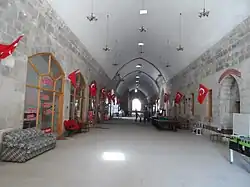 The commissioner of the complex was Öküz Mehmet Pasha (died in 1619), a grand vizier of the Ottoman Empire. (There is another caravanserai bearing his name in Kuşadası) During his campaign to Safavid dynasty of Persia (modern Iran) in 1615, he decided to spend the winter in Ulukışla. But he was unable to find adequate barracks for his soldiers and he had to distribute the troops to nearby towns. To solve the problem for the future campaigns he had the complex built in 1616. According to another theory about the origin of the complex, Ulukışla was the birth place of Öküz Mehmet Pasha and he tried to rebuild his home town. The complex underwent a renovation in 1753.[2] In 2011 it was restored by the Directorate of Foundations.[3] Presently the complex is used as a market place . Both the governorship and the municipality have offices in the building.
