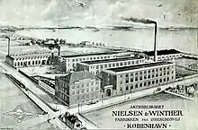 The first part of the street was gradually built over with taller buildings after the turn of the century. Several large industrial plants opened at the far end of the street in the 1910s and 1920s. One of them, was Nielsen & Winther, a machine factory and aeroplane manufacturer previously based on Blegdamsvej. The company inaugurated a large factory at Øresundsvej 147 in 1917. The complex was designed by Frederik Wagner. Just a few years later, in 1921, it was taken over by Vølund.[1] NKT opened a large cable factory on a neighbouring site in 1908.