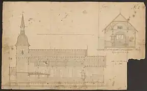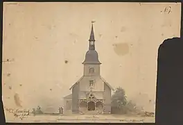 The earliest existing historical records of the church date back to 1385, but the church wasn't new at that time. The first church was a wooden stave church that was likely built during the 12th century. The original church was located about 50 metres (160 ft) west of the present-day church site. The original floor plan was that it was a rectangular long church design with a narrower chancel, very similar to the Kvernes Stave Church. Probably during the 1500s or 1600s, the church was enlarged by building transepts to the north and south of the nave, creating a cruciform floor plan. The additions were all built using stave church construction. After this renovation, the church nave measured about 20 by 9 metres (66 ft × 30 ft) and the church porch on the west end measured 4.3 by 4.3 metres (14 ft × 14 ft). In 1665, the roof was severely damaged due to a lightning strike and a new roof was built. In 1699, the old, medieval church was renovated and refurbished.[3][4]
