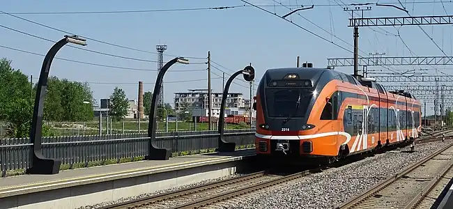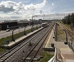 Ülemiste railway station (Estonian: Ülemiste raudteejaam) is a railway station in the Ülemiste sub-district of Tallinn, the capital city of Estonia. It is located approximately 500 metres from Tallinn Airport,[2] to which it has been connected by a tramline since 2017.[3]