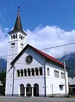 The church in Čezsoča is dedicated to Saint Anthony the Great. It was badly damaged during the First World War and restored in a Romanesque style in 1927. It contains the remnants of old frescoes.[2] The altar painting is a 1931 work by Eda Galli.[4]