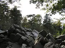 Łysica, which is also called Gora Swietej Katarzyny (St. Catherine's Mountain) lies in western part of the Lysogory range, near the village of Swieta Katarzyna. It belongs to the so-called Crown of Polish Mountains (“Korona Gor Polskich”), as it is the highest mountain of Holy Cross Mountains. Łysica has two peaks - western (613 m) and Eastern (Agatha's rock, pol. Skała Agaty) - 614 m)).