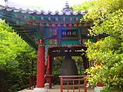 It was previously the residence of the Ii family and Matsudaira clan. In 1884, Shigenobu Ōkuma, the founder of Waseda University, remodeled the garden into semi-Western style. He placed a vast lawn, artificial hills, and ponds, and grew melons in a hothouse for the first time in Japan. After his death, the garden was donated to Waseda University. Although it suffered serious damage in the air raid of 1945, it was almost restored and now is a recreation place for students. The garden features an extensive lawn, brooks, seasonal plants and walking paths. There are lanterns, small stone pagodas, statues. Reduced-size replica of “Shotoku-Daiou-Shinkyo” which was donated by the Korean graduates’ association in commemoration of the 100th anniversary of the university, now adorns the garden.