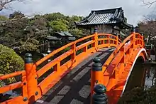 Modern day Ōmiya Street corresponds to the Higashi Ōmiya Ōji of the Heian-kyō.[1] After the decline of the Heian-kyō, as many other roads of the time it was extensively reduced, however it still remained by the time of the Kamakura period and beyond.[2] Due to the construction of the Nijō Castle, the street was divided in two, in the section between Takeyamachi and Oshikoj streets.[1]