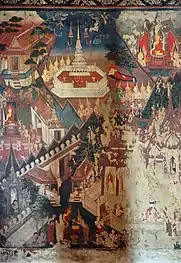 Painting depicting the death of Śāriputra at the Bangkok National Museum.