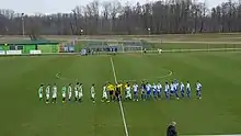 The club established a reserve team in the summer of 2016. Under the management of Nenad Dolgov, the first team topped the league table after the first half of the 2016–17 season; their most notable win being a 4–1 home victory over Slatina on 15 October 2016.[38][39] On 15 November 2016, Nenad Dolgov left his job as head coach of the club for personal reasons, though he stayed as head coach of the under-10 selection.[40] He was replaced by Boris Lazić who signed a three-year contract on 8 December 2016.[41] In the 2016–17 MNZ Cup, the team eliminated Mura Veterani, Šalovci, and Grad, before being eliminated in the semi-finals by the third division side Beltinci 3–0 on 17 May 2017.[42] On 21 May 2017, Radgona visited the league leaders Hodoš, who won the match with a goal scored in the 90th minute and were crowned champions of the league.[43] The club finished the 2016–17 season in third place with 42 points.[44] During the season, Radgona secured one of the biggest-ever home wins, when they defeated Ižakovci 9–0.[45] On 6 June 2017, the club received the official invitation to participate in the Third Division for the next season after league winners Hodoš declined promotion.[46] On 9 June 2017, the club accepted the invitation and was effectively promoted to the third tier for the second time in the club's history.[47]