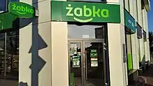 Żabka Polska (Polish pronunciation: [ˈʐapka]; lit. "little frog") is a chain of convenience stores in Poland.[2] There are at least 9,000 manned and unmanned stores across Poland, including at least 500 in Warsaw and over 340 in the Tricity area, as of January 2024. Some Żabka stores are located in the Czech Republic and owned by the Czech branch of the UK retail giant Tesco plc.[3] The retail turnover was about €650 million in 2010.[4] As of 2022, Żabka has more than 15.5 million customers.[5]