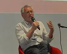 Mann (2010) says that Žilnik "stands freely and independently as a humanist not bound to any political system or state, not bound to the formalities of the industry, and not bound to any conventional form of artistic expression" and that "from the beginning onwards, his films have been defiant, shameless, exaggerated, blatantly ironic, erotic, gory, anti-romantic, antiideal, whistle-blowing, highly taboo-breaking, low-budget, and highly controversial".[16]. The scholar Roland Hsu of Stanford University writes that "there is probably no filmmaker who has explored the dynamics of postwar European politics, economy and culture with more persistence and vigor" than Žilnik.[17] His particular style of directing is recognized as pioneering the docudrama or "docu-fiction" genre.[1][2] Many of his films are seen as a prophecy of future events, such as the Breakup of Yugoslavia, economic transition from socialism to neoliberalism, erosion of workers' rights and wider issues related to labor and migration.[18]