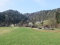 Želimlje includes the hamlets of Brezovica, Kopija (German: Kopinhof),[2] Kurja Vas, Namršelj (German: Hammerstiel),[2] Pleše, Podreber, Poljane (German: Wiesenhof),[2] Rogovila, Škopačnik, and Trnje, as well as various isolated farmsteads.[4] The remnants of Namršelj Manor (German: Hammerstill), with elements from the 16th, 17th, and 18th centuries, stand in Namršelj.[5] Želimeljščica Creek, a tributary of the Iščica River, flows north through the settlement.