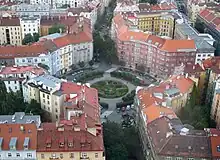![]() Žižkov as seen from Vítkov hill, with Žižkov Television Tower and St. Procopius church | |