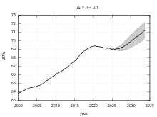 Since early 2017, the length of the day has happened to be very close to the conventional value, and ΔT has remained within half a second of 69 seconds.[3][4]