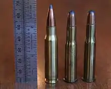 ![]() Round-nosed .303 Savage (center) with .308 Winchester (left) and .30-30 Winchester (right) | ||||||||