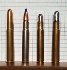 The .35 Whelen is a powerful medium-bore rifle cartridge that does not require a magnum action or a magnum bolt-face. The parent of this cartridge is the .30-06 Springfield, which is necked-up to accept a bullet diameter of .358 in (9.1 mm). This cartridge is more powerful than its parent, especially in killing power on large game. However, with much wider availability, and the higher BC (ballistic coefficient) .30 caliber bullets of today, the power gap between the two cartridges has been decreased.