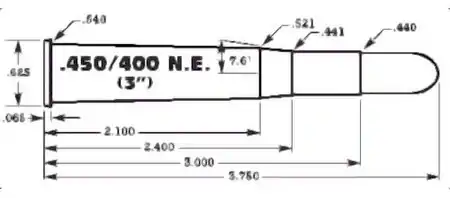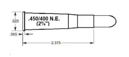 The .450/400 314-inch NE conversion was not initially entirely successful, under the increased pressures of the cordite loading the long neck could stick in the chamber causing the rim to pull off at extraction,[2] a problem not encountered under the milder black powder loadings. To counter this, the rim was increased in thickness to .042-inches. W.J. Jeffery & Co further improved the cartridge by reducing the length of the case to 3-inches and moving the neck further forward, creating the .450/400 3-inch NE.