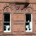 1–3 Churchyard Side is two-storey Victorian Gothic building in red brick with blue brick decoration and sandstone dressings, under a tiled roof.[1][2] The central main entrance is flanked by two gables and is reached by a flight of brick steps.[1] The left gable has an oriel window to the first floor, with the coats of arms of both Manchester and Liverpool beneath.[1][3] Several of the windows have stone mullions and transoms; some have decorative arches above in brick or brick and sandstone.