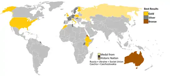 Ethiopia is the most successful nation in the event, with ten gold medals among its total of 24. Finland is the next most successful, with six gold medals and thirteen overall. Finland's period of great success in early 20th century led to wide usage of the nickname the Flying Finns; Kaarlo Maaninka was the last Finnish athlete to medal over 10,000 m, in 1980. Kenya has won eleven medals, although Naftali Temu is the only Kenyan to have won Olympic gold.
