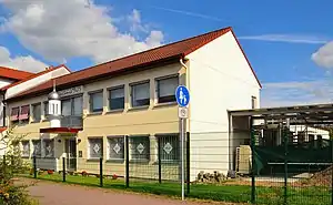 | 16. | Bait-ul-Muqiet Mosque | Wabern | Hesse | 2007 | "Mosque of the Sustainer“, foundation May 2005, completed 23 Nov 2007, plot 2956 m2, one minaret 9 m height, 54 members, Mosque 330 m2, prayer halls 2 * 70 m2[13] 51°5′59.6″N 9°21′22.7″E / 51.099889°N 9.356306°E[M 18] | ![]() |