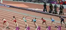 Several amendments were made to the competition format in 2012. Any participant not in possession of an Olympic qualifying standard time is entered into the preliminary round. Qualifiers in this round progress to the first round proper. The semi-finals stage is divided into three races: the top two progress to the final by right and the two fastest non-qualifiers complete the eight finalists. Changes to the international false start rules were also introduced – any validly recorded reaction time to the starter's pistol of below 0.1 seconds will result in instant disqualification.[11] At the 2004 and 2008 Olympics one false start was allowed per race, with any subsequent false start resulting in disqualification for the offending athletes. At Olympics prior to 2004 each athlete was allowed one false start, with a second false start leading to removal from the field.[12][13]