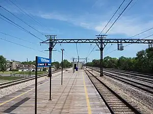 103rd Street (Rosemoor) is a commuter rail station along Metra Electric's main line in the Rosemoor neighborhood of Chicago.[2] It is located at 103rd Street and Cottage Grove Avenue, and is 13.1 miles (21.1 km) away from the northern terminus at Millennium Station.[3] In Metra's zone-based fare system, 103rd Street (Rosemoor) is in zone C. As of 2018, the station is the 217th busiest of Metra's 236 non-downtown stations, with an average of 36 weekday boardings.[1]