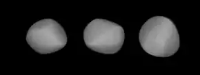 The asteroid has a slightly elongated shape, with a ratio of 1.20 between the lengths of the major and minor axes. The orbital longitude and latitude of the asteroid pole in degrees is estimated to be (λ0, β0) = (68°, 23°).[8] Measurements of the thermal inertia of 115 Thyra give a value of around 75 m−2 K−1 s−1/2, compared to 50 for lunar regolith and 400 for coarse sand in an atmosphere.[3]