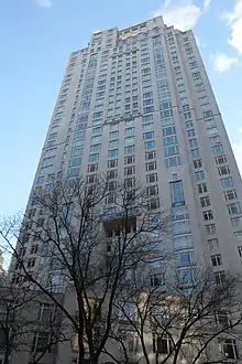 15 CPW opened in August 2007. By the end of that year, a third of condo purchases had been finalized, though some tenants immediately sought to resell their condos.[84] Several units were listed for $80 to $90 million, far more than what their owners had paid;[85][86] at the time, the most expensive residence ever sold in New York City was a $53 million townhouse.[85] One penthouse was so expensive that the brokers were not allowed to formally advertise it, though its tenant sought $100 million.[42] Another unit, resold at $9,486/sq ft ($102,110/m2), was the city's most expensive condominium per square foot.[87] There was also demand for rental apartments at the building; in early 2008, a four-bedroom apartment (listed at $55,000 a month) was rented within three weeks of being listed.[88] Vanity Fair described 15 CPW as "the highest-priced new apartment building in the history of New York".[4] Though the real-estate market in general had slowed down due to the financial crisis of 2007–2008, luxury condo sales at 15 CPW and the Plaza Hotel disproportionately impacted average apartment prices in Manhattan.[89][90]