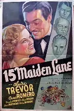 15 Maiden Lane is a 1936 American crime film directed by Allan Dwan and starring Claire Trevor, Cesar Romero, and Lloyd Nolan.[1] The Museum of Modern Art in New York City screened a restored print of the film in June 2013 as part of an Allan Dwan retrospective.[2]