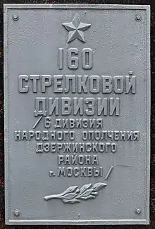 Memorial plaque to the 160th/6th Moscow Militia placed at Borovsk in recognition of its liberation on January 4, 1942
