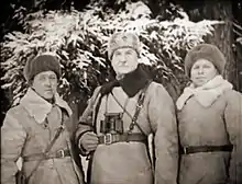 Colonel F. M. Orlov (center) with two of his subordinates, winter 1941-42