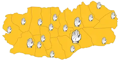 ![]() Wallachian constituencies, by number of deputies sent to the ad hoc Divan. | |||||||||||||||||||||