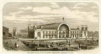 The Exposição Internacional do Porto, known in English as the International Exhibition of 1865, was a world's fair held in the Portuguese city of Porto. The exhibition was housed inside the grand Palácio de Cristal, which was modelled on the synonymous Crystal Palace erected for The Great Exhibition held during 1851 in London. The building's designer was Anglo-Irish civil engineer Francis Webb Sheilds, who also engineered its construction – he had been the resident engineer for the earlier building between 1852 and 1858.[1][2] The building was demolished in 1951 after hosting many other expositions.[3]