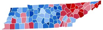 For over a century after the Civil War, Tennessee’s white citizenry was divided according to partisan loyalties established in that war. Unionist regions covering almost all of East Tennessee, Kentucky Pennyroyal-allied Macon County, and the five West Tennessee Highland Rim counties of Carroll, Henderson, McNairy, Hardin and Wayne[3] voted Republican – generally by landslide margins – as they saw the Democratic Party as the “war party” who had forced them into a war they did not wish to fight.[4] Contrariwise, the rest of Middle and West Tennessee who had supported and driven the state’s secession was equally fiercely Democratic as it associated the Republicans with Reconstruction.[5] After the state’s white landowning class re-established its rule in the early 1870s, blacks and Unionist whites nonetheless forged adequate support for the GOP to produce a competitive political system for two decades,[6] although during this era the Republicans could only capture statewide offices when the Democratic Party was divided on this issue of payment of state debt.[6]
