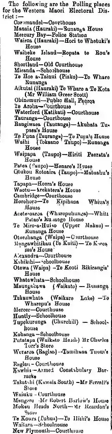 - 1 2 "The Western Maori Electoral District". Wanganui Herald. Vol. XX, no. 6087. 2 December 1886. p. 3. Retrieved 16 March 2014.