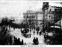 The first train load of contract workers arrived on 10 September 1892 and were met with violence and hostility from the local men and women. This conflict continued over the coming days and police resistance also escalated at a meeting of the Labour Defence Committee held at the Theatre Royal Hotel with the attendance of 30 police with fixed bayonets.[19]