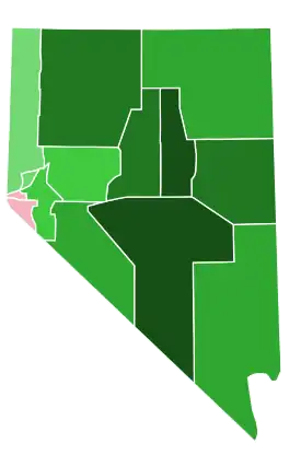 1. Because Harrison and Weaver ran in the top two places in Nevada and in every county within the state, all margins given are Harrison vote minus Weaver vote and Harrison percentage minus Weaver percentage.
