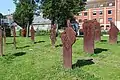 Memorial to the victims of the Katyn massacre | Grounds of Clifton Cathedral | 1985 | Alexander Paul Klecki | Sculpture | Fibre glass relief panel mounted on a block of Cornish granite with a plinth of Portland stone | [1][2] |