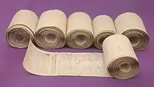 The 1893 women's suffrage petition was the third of three petitions to the New Zealand Government in support of women's suffrage and resulted in the Electoral Act 1893, which gave women the right to vote in the 1893 general election. The 1893 petition was substantially larger than the 1891 petition, which had around 9,000 signatures, and larger still than the 1892 petition, which contained some 20,000 signatures.[1] The third petition was the largest petition presented to Parliament at that point with nearly 32,000 signatures.[2] The petition was signed in various parts of the country by women, aged 21 or older, who signed their names and addresses.