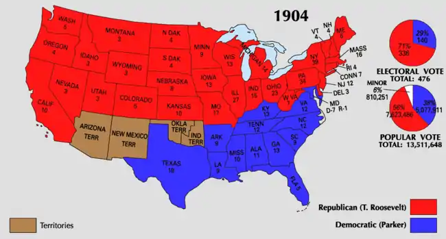 25. "1904 Presidential General Election Data - National". Uselectionatlas.org. Retrieved April 26, 2013.