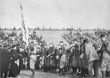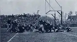 In the fourth week of the 1909 season, Michigan shut out Syracuse, 44 to 0,[27] before a crowd estimated at 7,500 persons at Ferry Field.[28] The game was the second played between the schools, with Syracuse having won the first game in 1908 by a score of 28 to 4.[29]