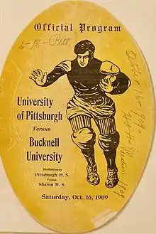 - ↑ "Pitt Defeats Bucknell, Displaying Unusually Brilliant Form". The Pittsburgh Sunday Post. October 17, 1909. p. 3-1 – via Newspapers.com.