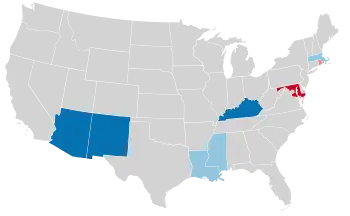 Kentucky, Louisiana, Maryland and Mississippi held their gubernatorial elections in odd numbered years, every 4 years, preceding the United States presidential election year.