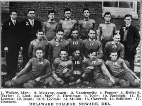 1. 1 2 "Lebanon Valley Holds Old Delaware to Scoreless Tie". The Morning News. Wilmington, Delaware. October 14, 1912. p. 4 via Newspapers.com.