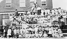 Alberta's drive for prohibition was primarily driven forward by two temperance groups: the Women's Christian Temperance Movement (WCTM) and the Temperance and Moral Reform League (TMRL), along with the United Farmers of Alberta.[15] While sharing similar ideals, the TMRL was structured as a political party, with a central executive and local organizations in each of Alberta's electoral districts.[15] T. H. Miller served as the president of the TMRL leading up to the plebiscite.[16] Both the WCTM and TMRL aimed to ensure the election of temperance MLAs, regardless of party affiliation,[17][18] and found support among influential figures in Alberta such as Lieutenant Governor George H. V. Bulyea, Premier Alexander Cameron Rutherford, Minister William Henry Cushing, and Conservative leader R. B. Bennett.[18] Additional arguments advocating for prohibition were published in William McCartney Davidson's Calgary Albertan.[19] In 1908, Louise McKinney was appointed President of the Alberta-Saskatchewan Union of the WCTM, and she played a pivotal role in leading the organization through the prohibition plebiscite.[20] Two years later, McKinney made history by becoming the first woman legislator in the British Empire after being elected as a Member of the Legislative Assembly of Alberta in the 1917 general election.[21]
